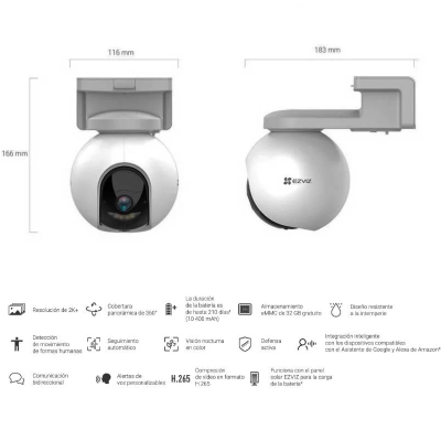 CÁMARA PT IP WIFI CON BÁTERIA HB8 2K / 4MP / BATERIA / AUTOTRACKING / IA / AUDIO / LED / EXTERIOR /